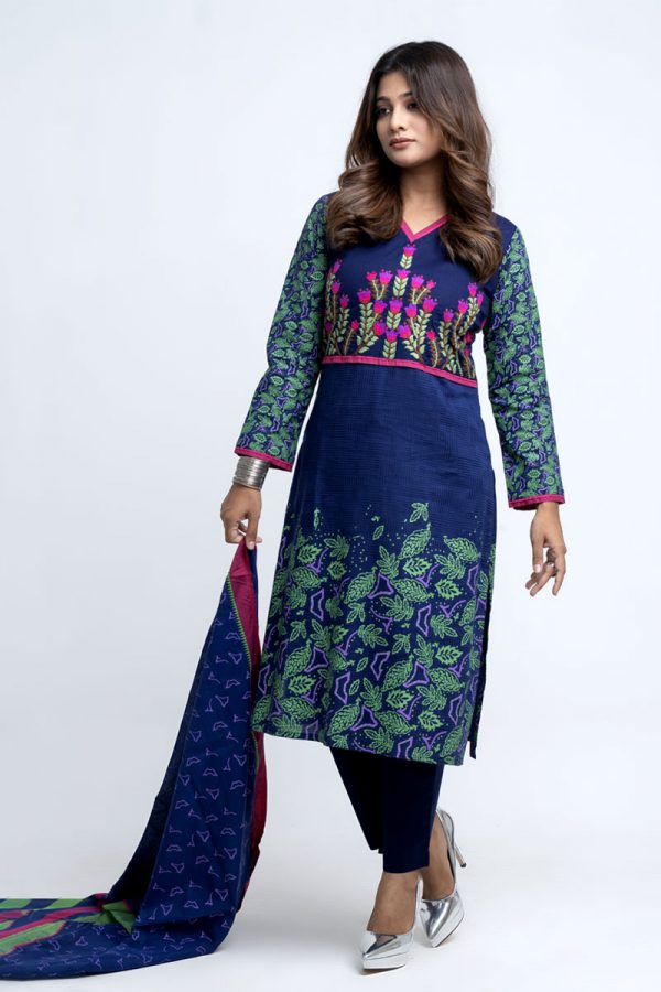 Be the first to review “Dark Navy Blue Jacquard Cotton Printed Salwar Kameez Set”
